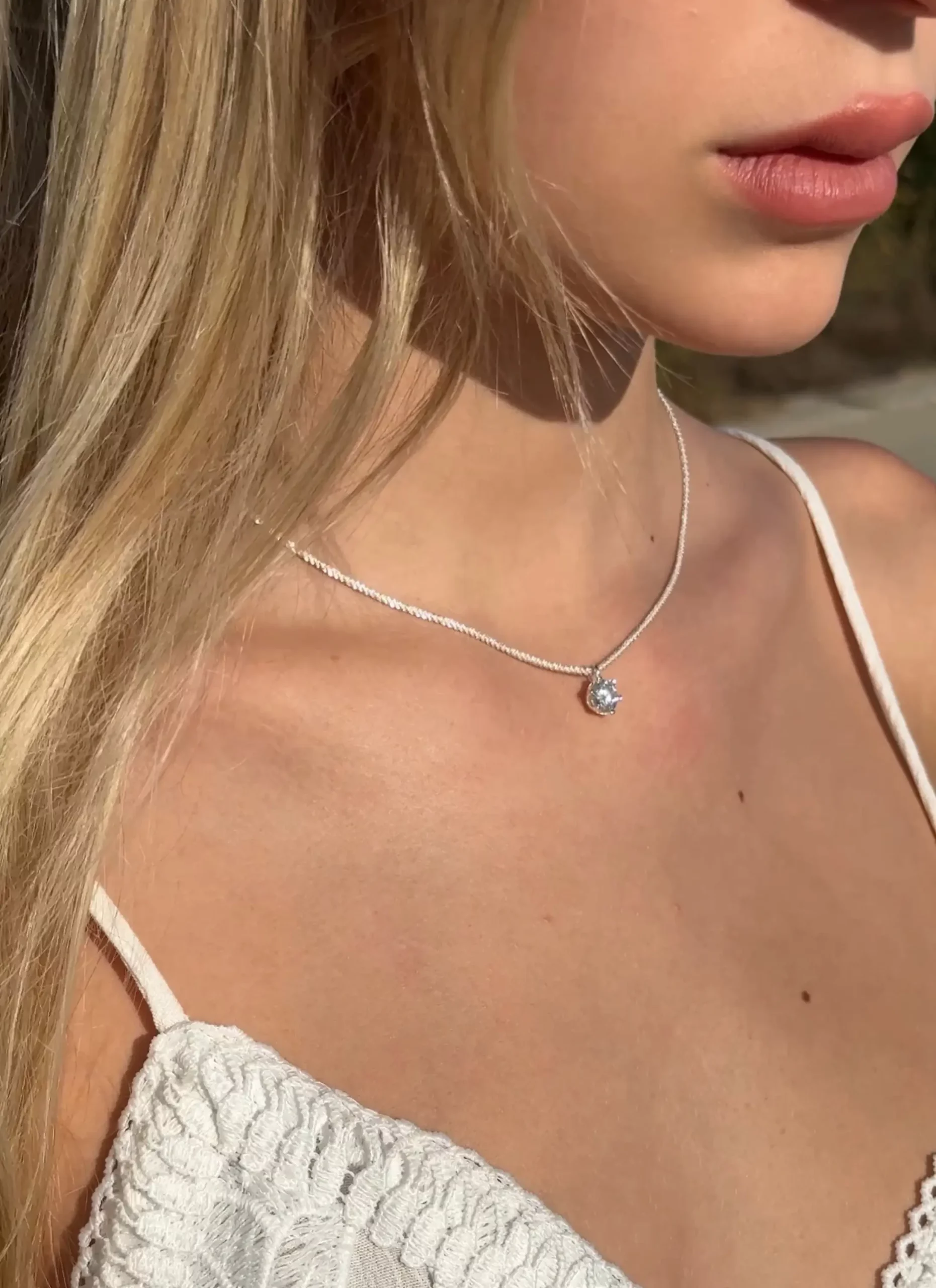 שרשרת בעלת נוכחות אלגנטית ועדינה, עשויה כסף 925 אמיתי, עם אבן מוסינייט איכותית בקוטר 1 קארט המשקפת אור כמו יהלום ומעניקה ברק מרהיב מכל זווית.