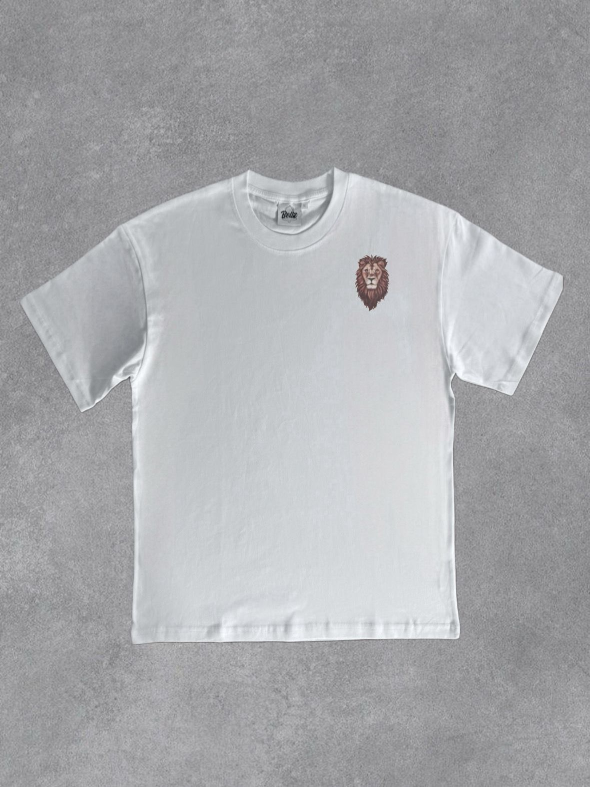 הדפס גרפי מרהיב של אריה עוצמתי, משולב באלמנטים של עושר, ביטחון ועוצמה – עם כיתוב “Lion Money”